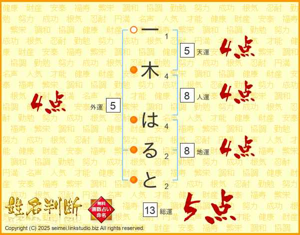 一木はるとさんの総運は13画の5点!
