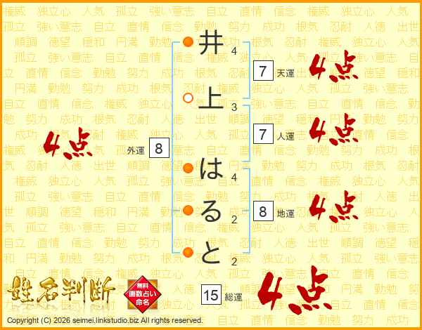 井上はるとさんの人運は7画の4点!