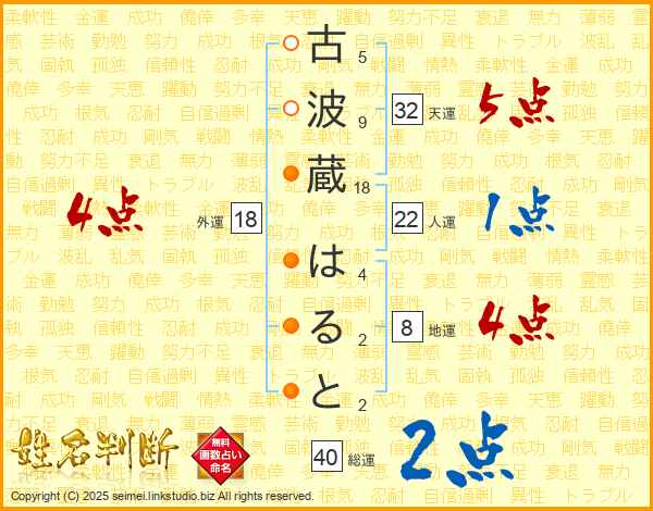 古(5画)波(9画)蔵(18画) は(4画)る(2画)と(2画)