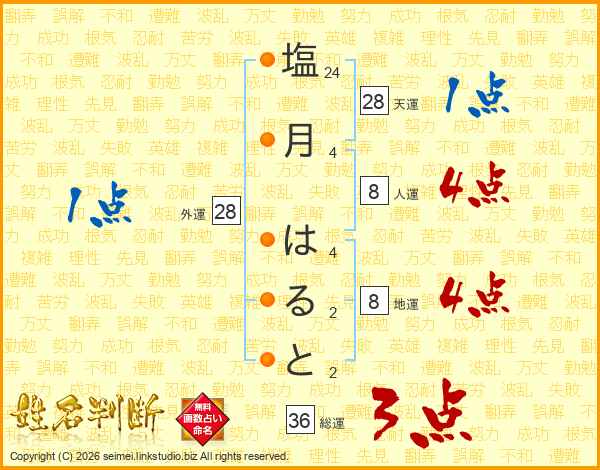 塩月はるとさんの総運は36画の3点!