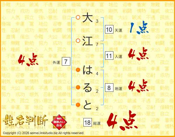 大(3画)江(7画) は(4画)る(2画)と(2画)