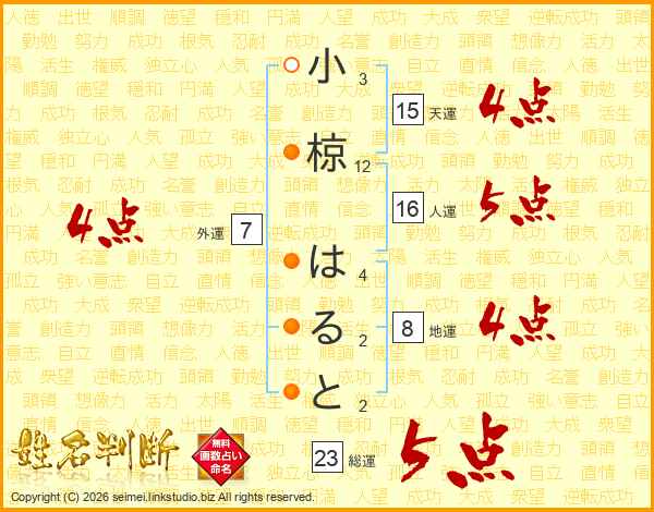 小椋はるとさんの総運は23画の5点!