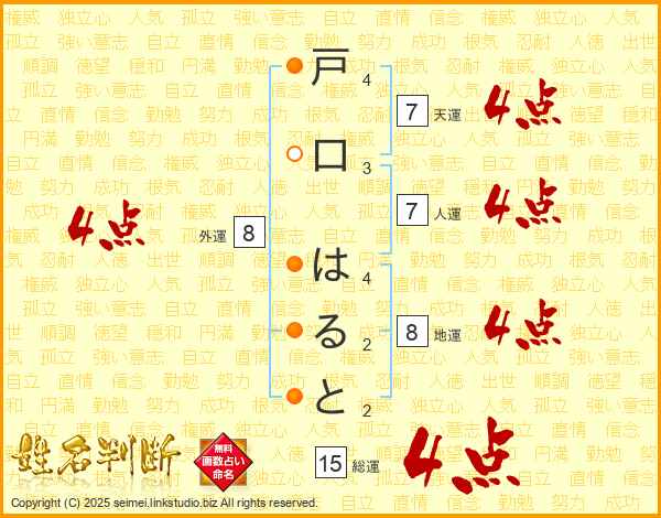 戸口はるとさんの天運は7画の4点!