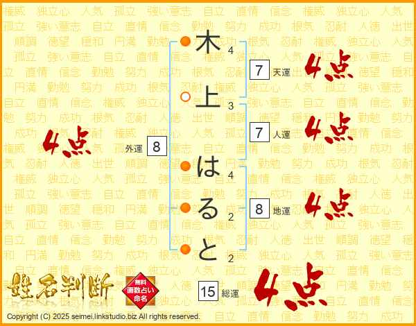 木(4画)上(3画) は(4画)る(2画)と(2画)