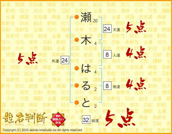 瀬(20画)木(4画) は(4画)る(2画)と(2画)