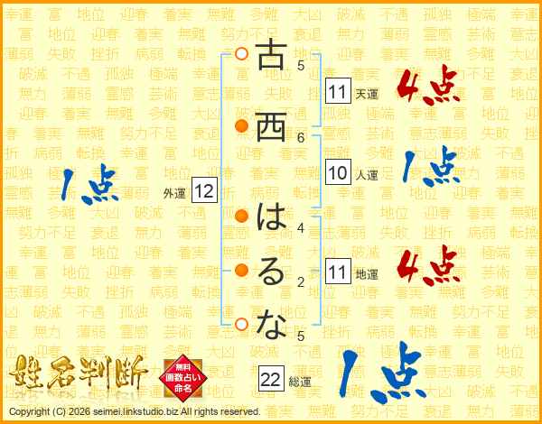 古西はるなさんの総運は22画の1点!
