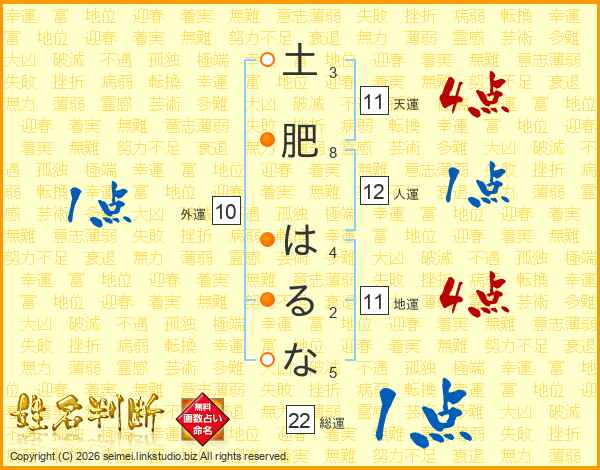 土肥はるなさんの総運は22画の1点!