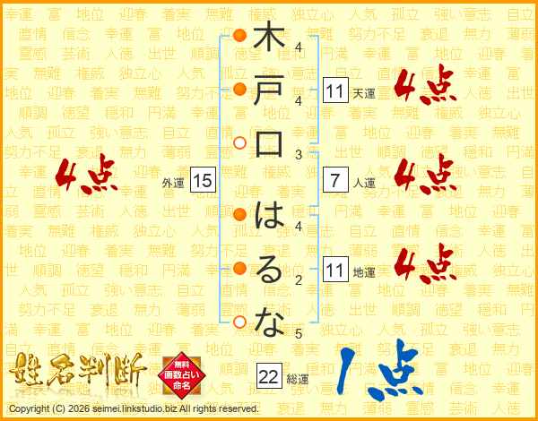 木戸口はるなさんの天運は11画の4点!