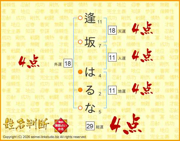 逢(11画)坂(7画) は(4画)る(2画)な(5画)