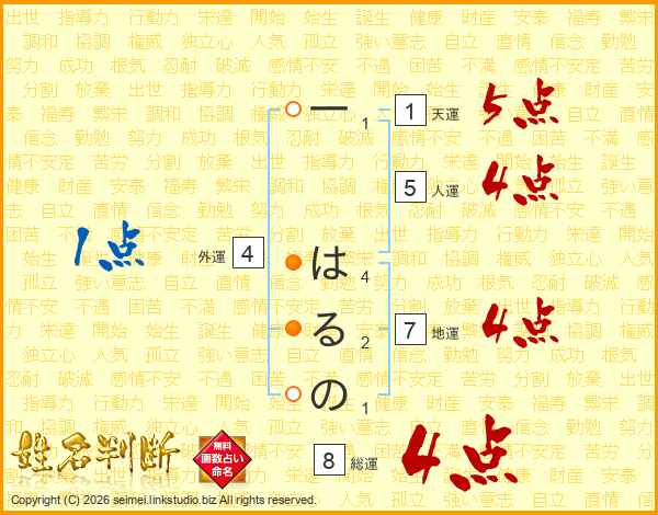 一はるのさんの総運は8画の4点!