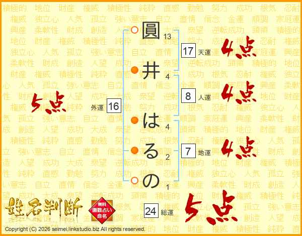 圓(13画)井(4画) は(4画)る(2画)の(1画)
