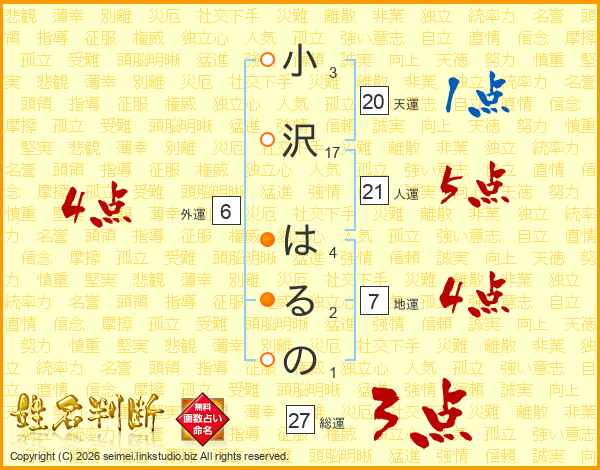 小沢はるのさんの総運は27画の3点!