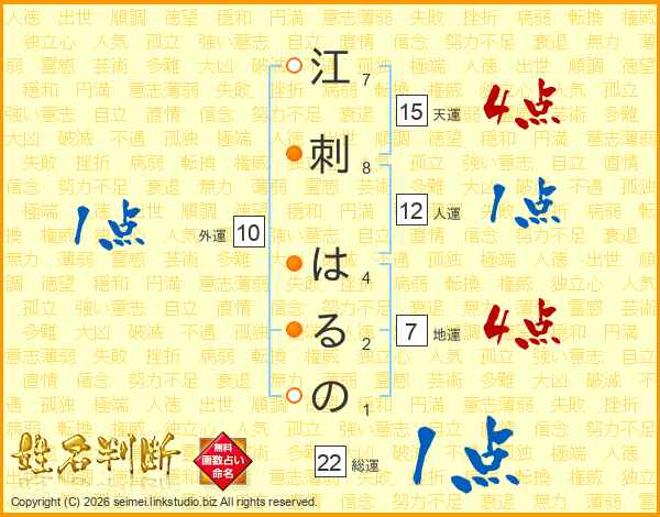 江刺はるのさんの総運は22画の1点!