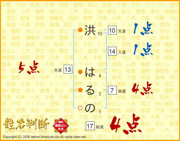 洪はるのさんの総運は17画の4点!