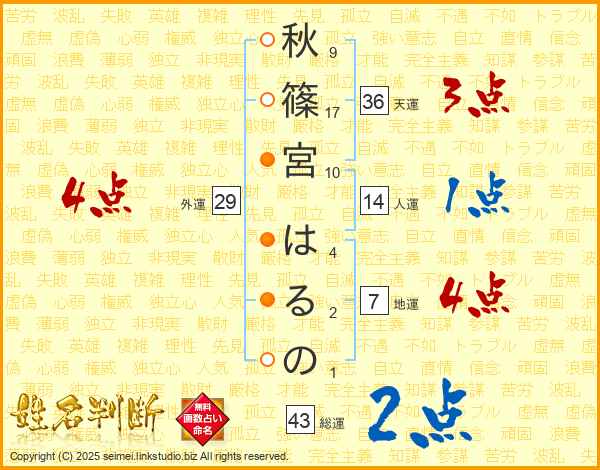 秋篠宮はるのさんの総運は43画の2点!