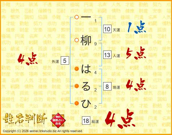一柳はるひさんの総運は18画の4点!