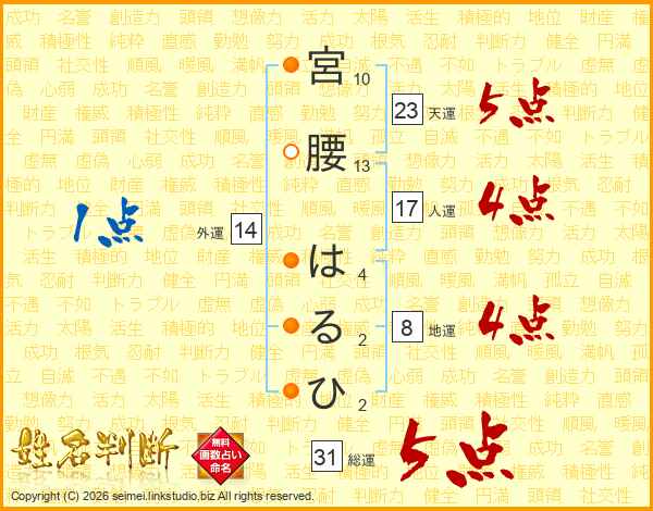 宮腰はるひさんの総運は31画の5点!