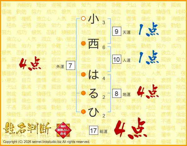 小西はるひさんの総運は17画の4点!