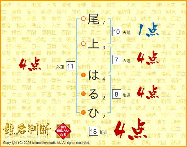 尾(7画)上(3画) は(4画)る(2画)ひ(2画)