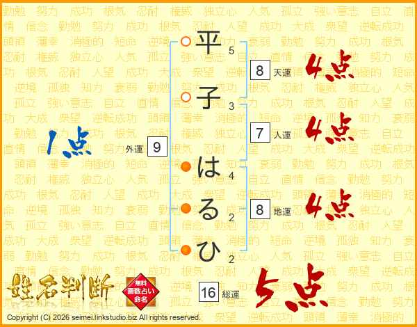 平子はるひさんの総運は16画の5点!