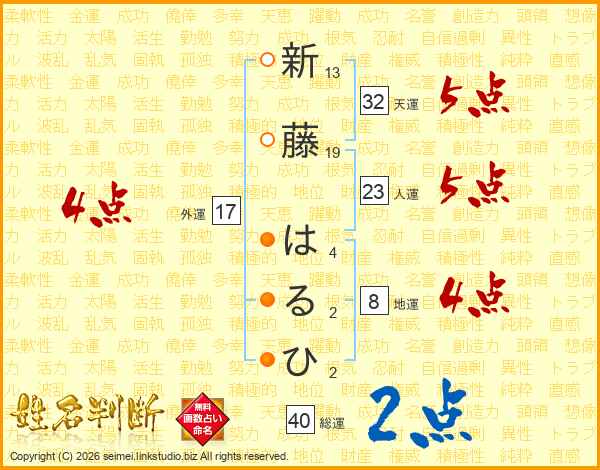 新(13画)藤(19画) は(4画)る(2画)ひ(2画)