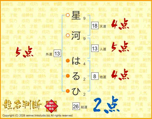星(9画)河(9画) は(4画)る(2画)ひ(2画)