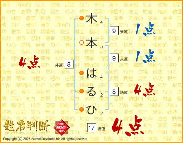 木本はるひさんの総運は17画の4点!