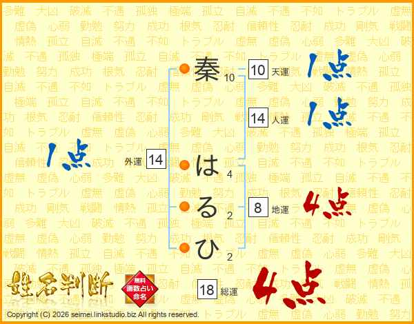 秦はるひさんの外運は14画の1点!