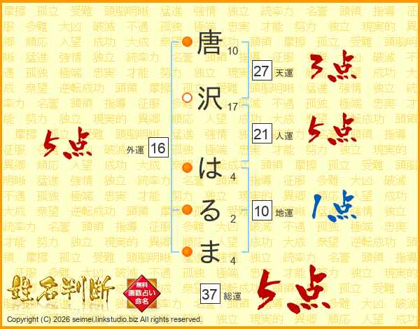 唐沢はるまさんの総運は37画の5点!