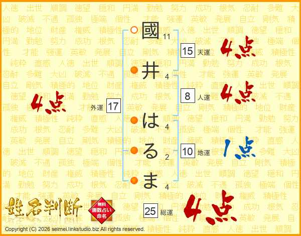 國井はるまさんの総運は25画の4点!