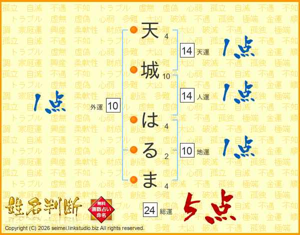 天(4画)城(10画) は(4画)る(2画)ま(4画)
