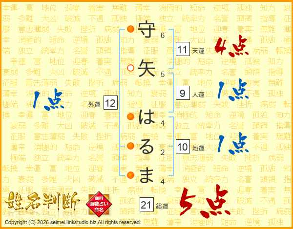 守矢はるまさんの総運は21画の5点!