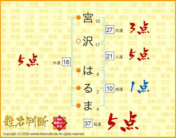 宮(10画)沢(17画) は(4画)る(2画)ま(4画)