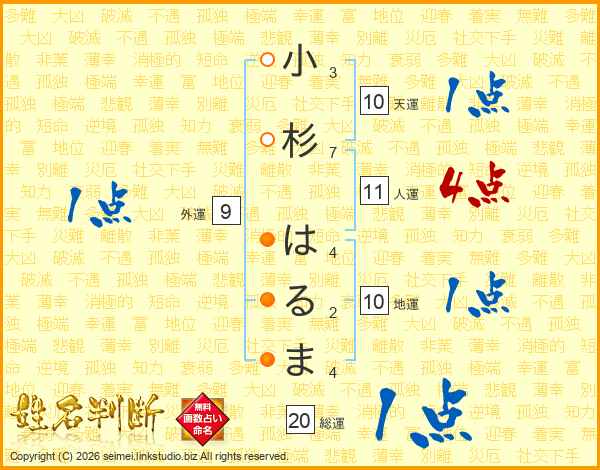 小(3画)杉(7画) は(4画)る(2画)ま(4画)