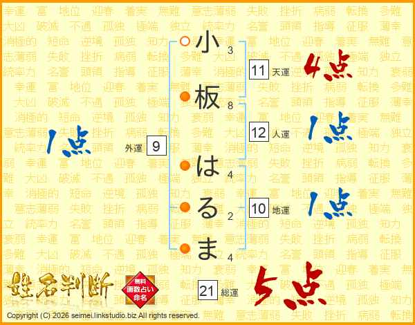 小板はるまさんの総運は21画の5点!