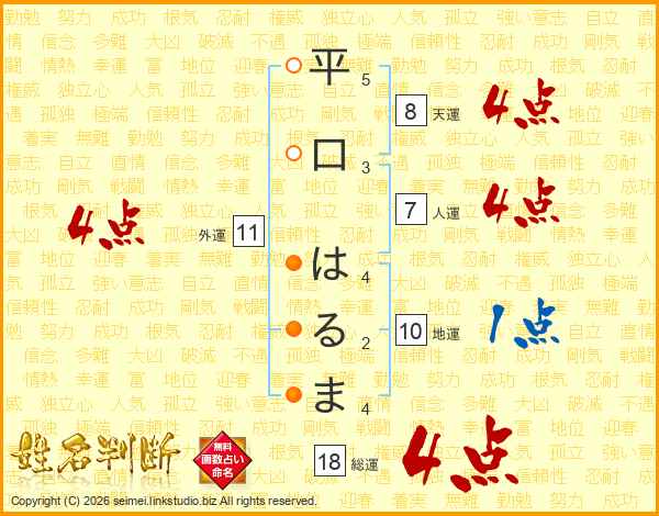 平口はるまさんの総運は18画の4点!