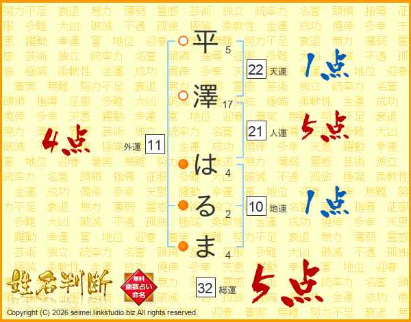 平澤はるまさんの総運は32画の5点!