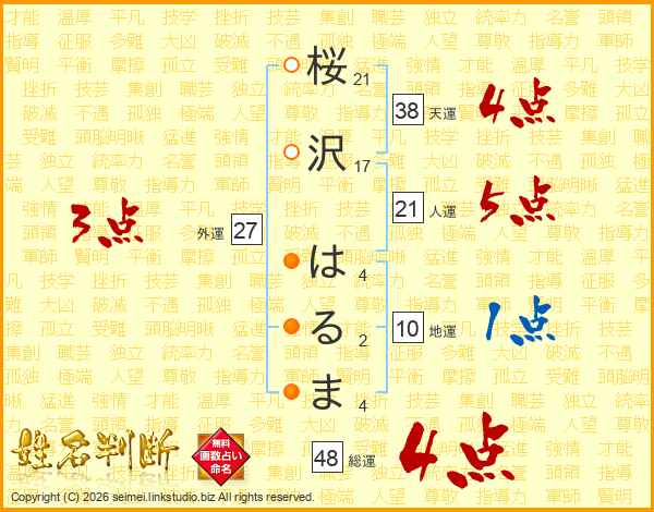 桜沢はるまさんの総運は48画の4点!