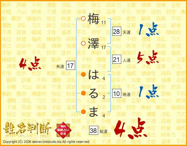 梅澤はるまさんの総運は38画の4点!