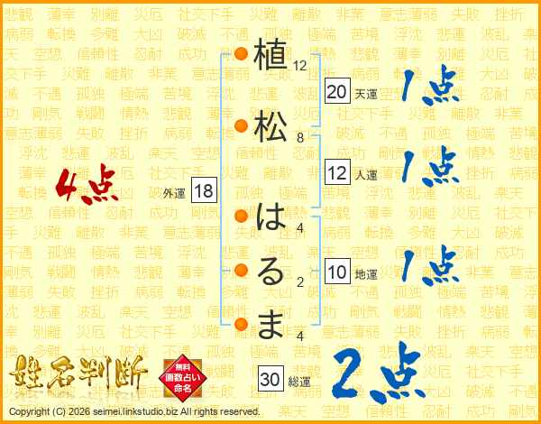 植松はるまさんの総運は30画の2点!
