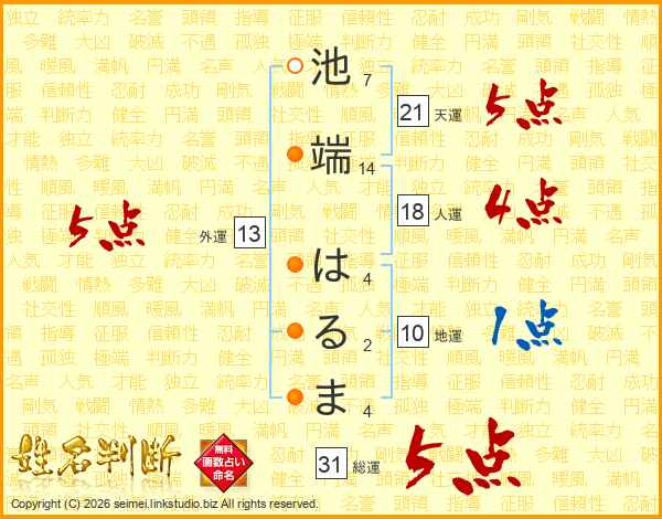 池端はるまさんの総運は31画の5点!