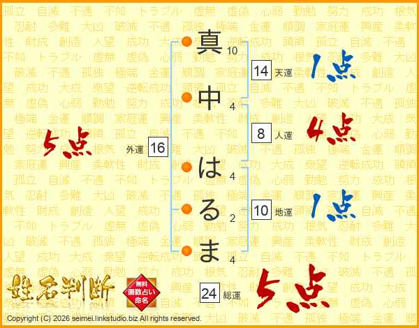 真中はるまさんの総運は24画の5点!