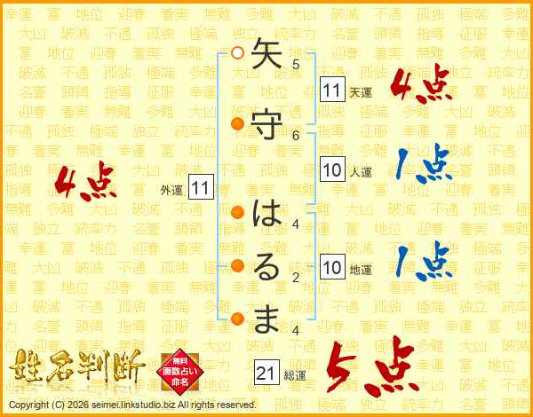 矢守はるまさんの総運は21画の5点!