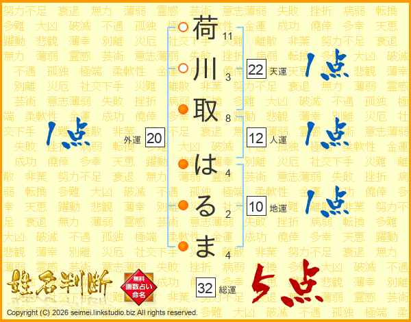 荷川取はるまさんの総運は32画の5点!