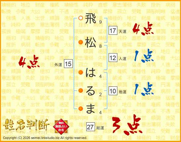 飛松はるまさんの総運は27画の3点!