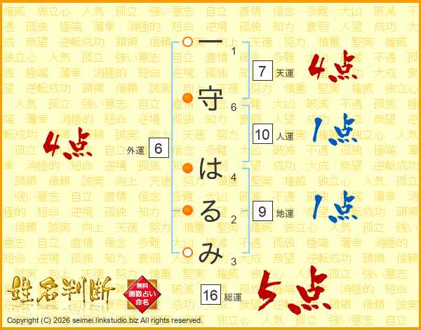 一守はるみさんの総運は16画の5点!