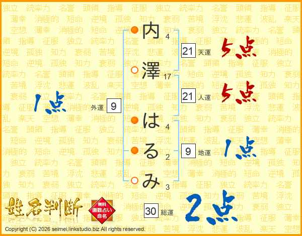 内澤はるみさんの総運は30画の2点!