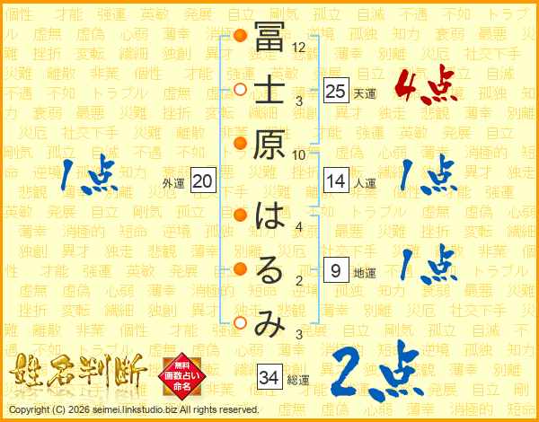 冨士原はるみさんの総運は34画の2点!