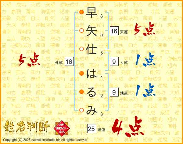 早(6画)矢(5画)仕(5画) は(4画)る(2画)み(3画)
