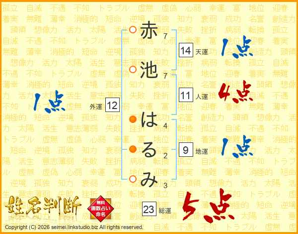 赤(7画)池(7画) は(4画)る(2画)み(3画)
